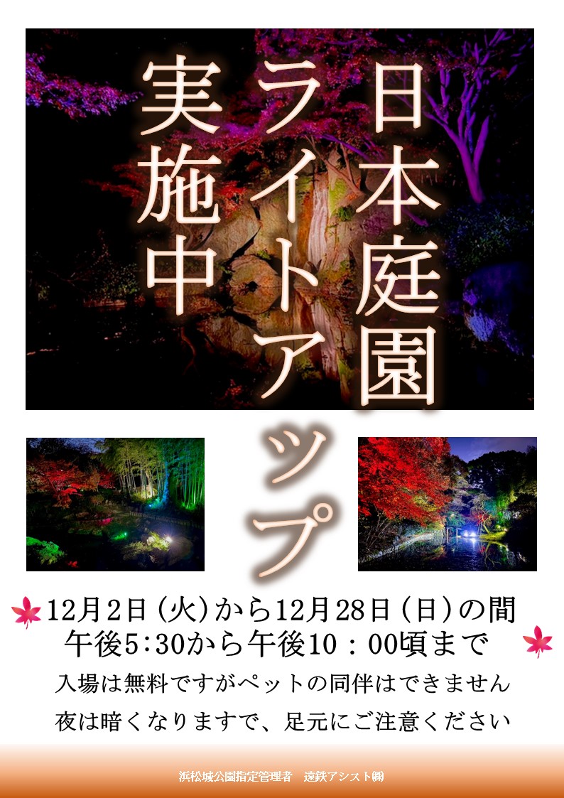 12月2日(火)より浜松城公園内の日本庭園で、秋のライトアップを開始しました。