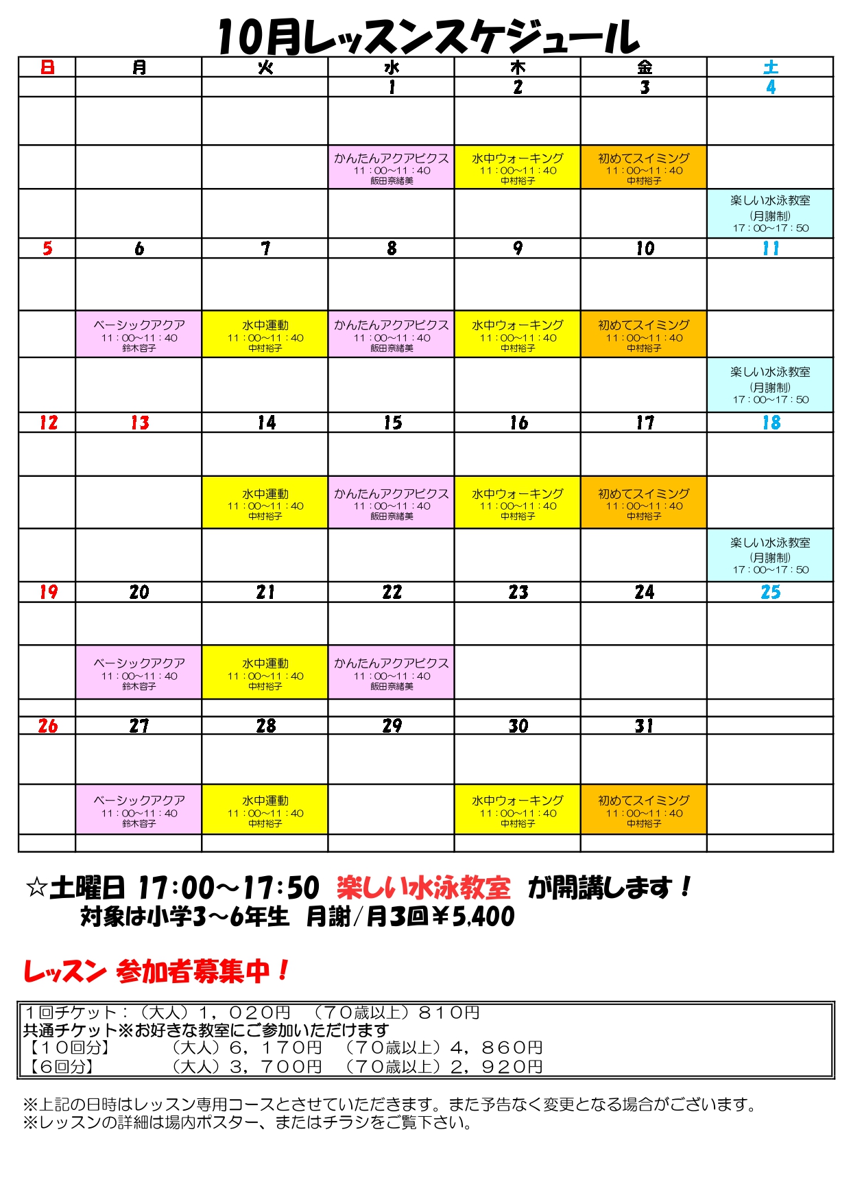 Home > お知らせ > 可美公園水泳場レッスンのご案内(10月)