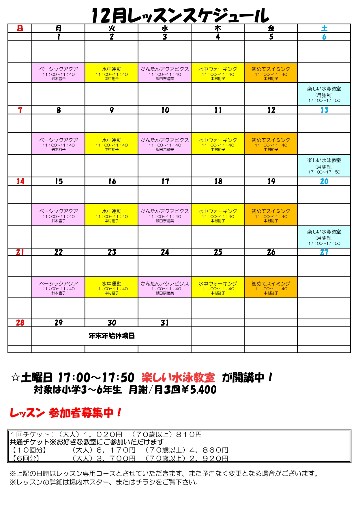 Home > お知らせ > 可美公園水泳場レッスンのご案内(12月)