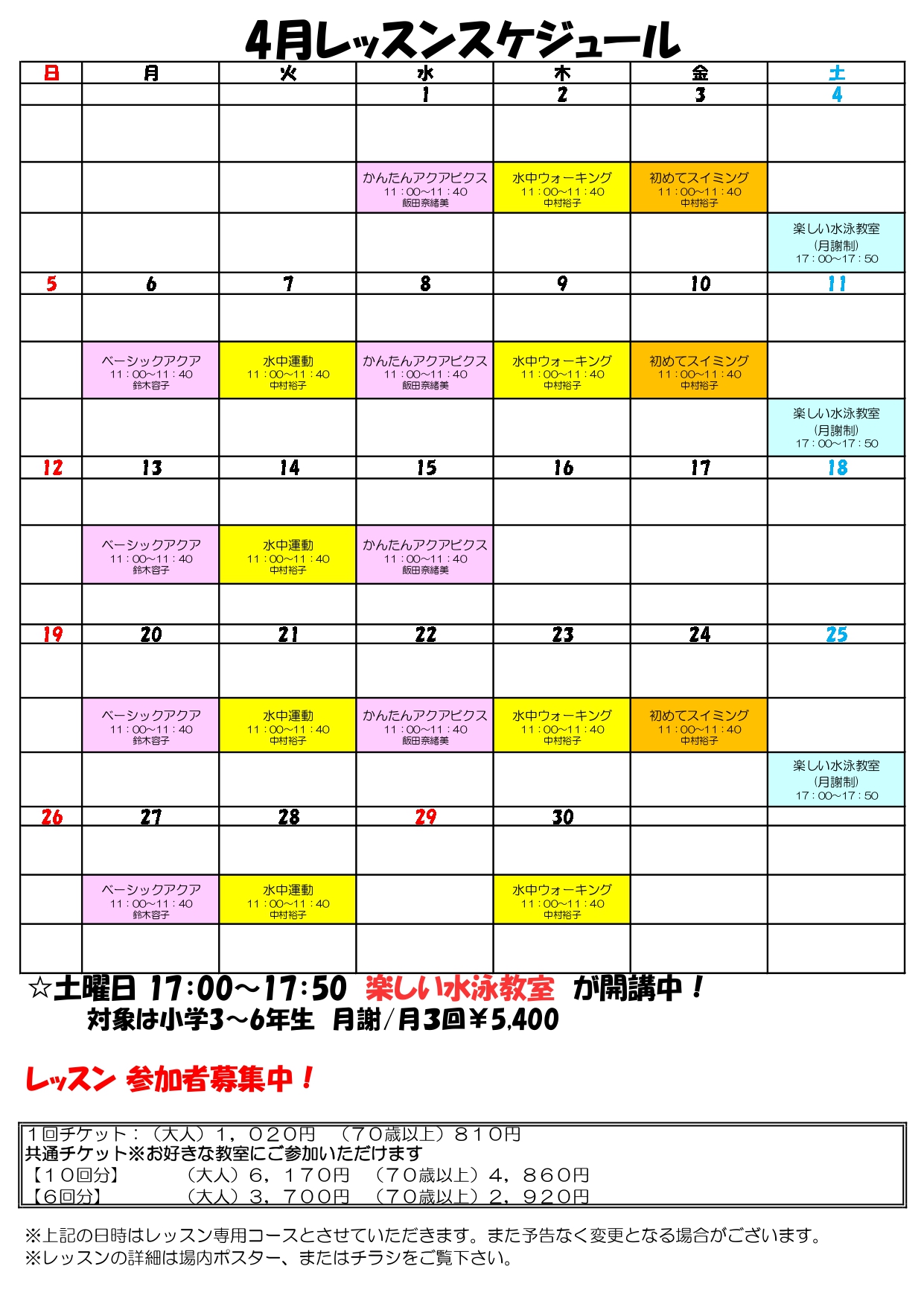 Home > お知らせ > 可美公園水泳場レッスンのご案内(4月)